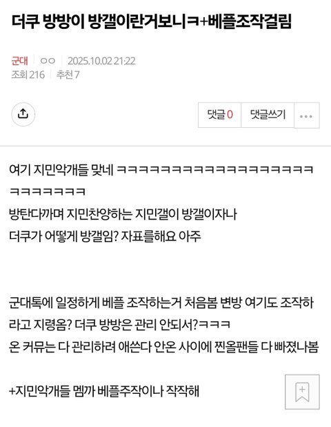 멤까짤 올리는거 지민악개들맞네