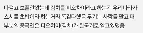 한국인이 스시 오뎅을 초밥 어묵이라고 부르는 거랑 중국이 김치를 파오차이라고 부르는게 어떻게 같아?