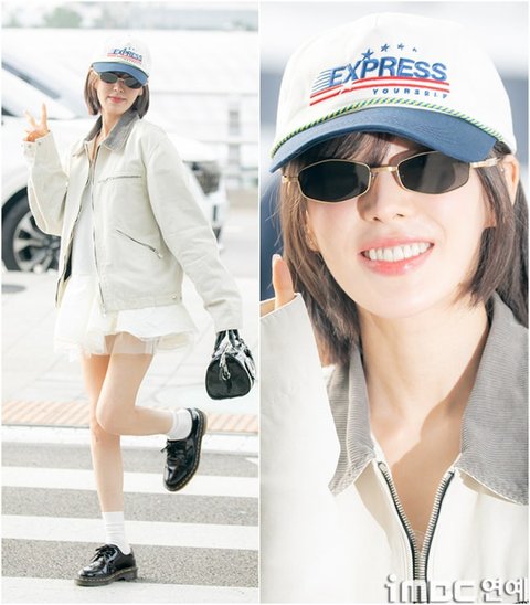 특히 웬디는 화이트 원피스로 드러난 각선미로 러블리한 여러 포즈를 취하며 "복 많이 받으세요~"라는 짧은 멘트와 함께 출국장으로 향했다. '탑건'의 파일럿 같은 포스였지만 텐션과 요정미는 여전했다.