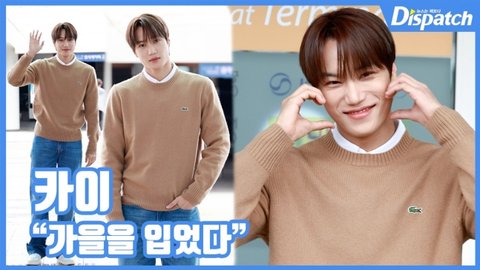 이날 카이는 브라운 니트에 데님 팬츠를 매치해 댄디한 공항패션을 완성했다.