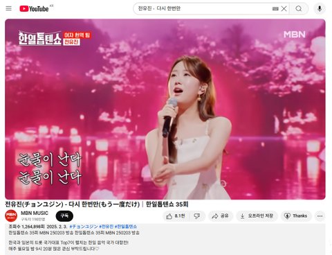 (사진1 설명) 전유진(チョンユジン) - 다시 한번만(もう一度だけ)|한일톱텐쇼 35회