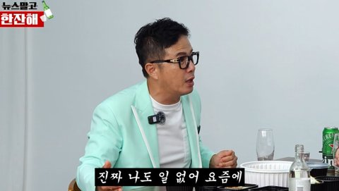 그는 "시청자들에게 '뉴스 말고 한잔해'라는 이 프로가 희망이 되는 프로가 됐으면 좋겠다. 진실된 모습. 쇼윈도 연예인이 아니라 진실된 모습을 보여줬으면 좋겠다"며 "나도 어렵다. 일 없다 요즘에. 내가 빌려준 돈이 얼만지 아냐. 35억을 빌려주고 못 받고 있다. 내가 이런 미친놈이다"라고 한탄했다.