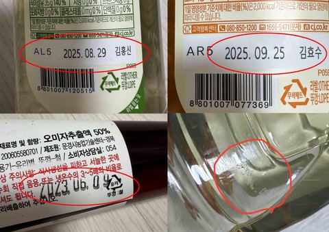 게다가 오미자 즙은 유통기한이 제조년부터 1년인데 2023년 생산이었어요.