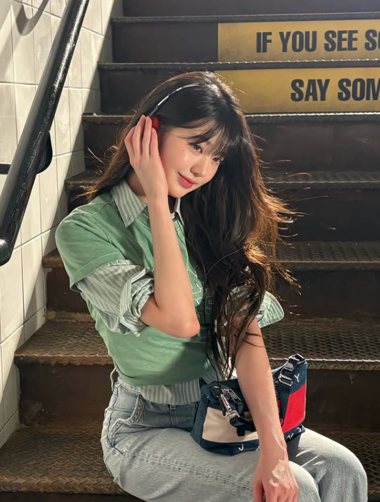사진 속 장원영은 포근하고 발랄한, 캐주얼한 분위기를 살린 니트와 심플한 라운드 넥 티셔츠를 걸쳐 풋풋한 느낌을 더했다.
