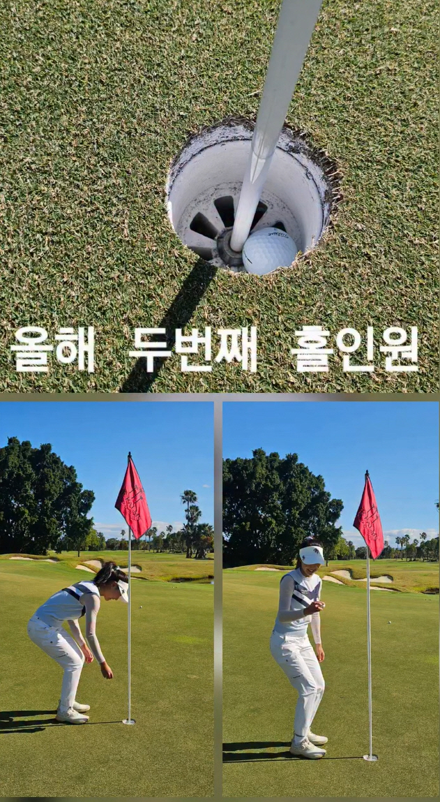 공개된 영상 속 송지아는 두 번째 홀인원을 기록한 뒤, 골프공을 손에 든 채 환하게 웃으며 브이(V) 포즈를 취하고 있어 눈길을 끈다.