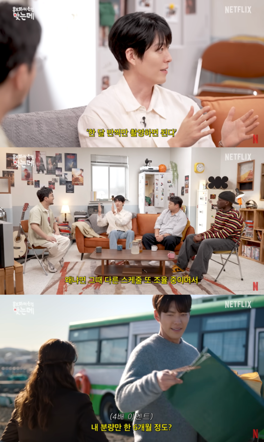 김우빈은 “캐릭터가 많으니까 괜찮겠다 싶어서 ‘어 그러면 부담이 없겠다’고 생각했다. 왜냐하면 그대 다른 스케줄 또 조율 중이어서 대본도 너무 좋고 ‘하겠습니다’라고 호기롭게 대답을 했는데 날씨 영향도 있고 스케줄 맞추는 게 힘들어서 내 분량만 한 6개월 정도 촬영한 것 같다”라고 했다.
