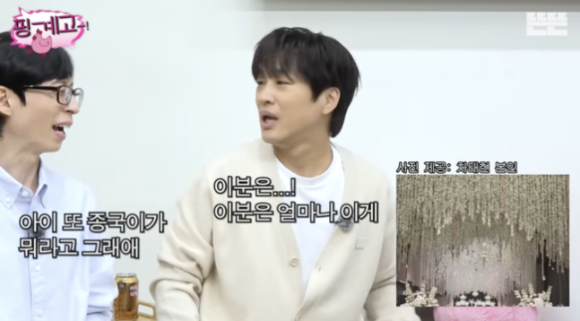 차태현은 “아무도 사진을 안 찍었더라고”라며 “나도 생각해보니까 결혼식 사진을 찍었어. 원래 결혼식 사진을 안 찍는데, 결혼식장이 너무 예쁘게 하늘에서 꽃비가 내리듯이. 그래서 딱 찍고, 종국이도 찍었다. 나는 그런 얘기를 못들었어. 찍지 말라고. 나는 못 들었다”고 말했다.