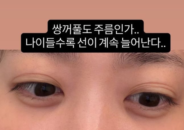 김다예는 5일 "쌍꺼풀도 주름인가..나이들수록 선이 계속 늘어난다"라며 "1줄로 태어나 9줄이 되었다. 할머니가 되면 백줄 되는 건가"라는 글과 함께 사진을 게재했다.