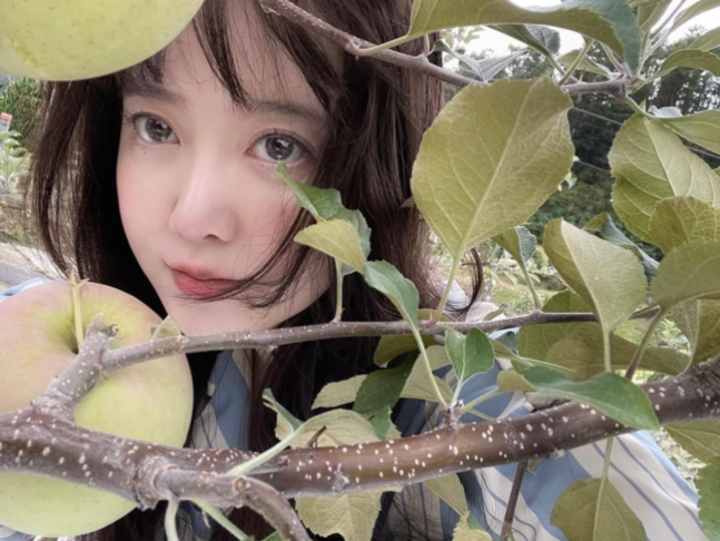 구혜선은 6일 "파자마입고 엄빠네 사과밭에 왔어요. 열매를 주셔서 감사합니다. 즐거운 명절 되셔요"라는 글과 함께 사진을 게재했다.