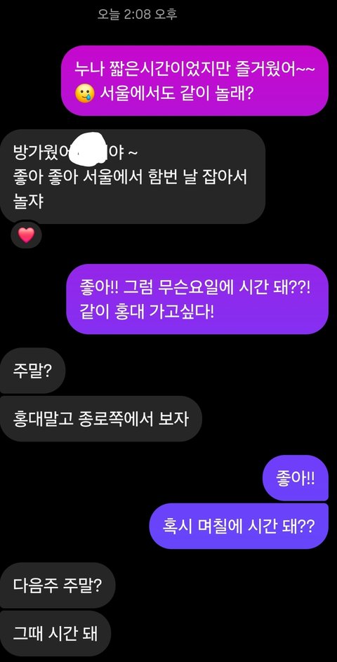 상대는 이번에 일본여행갔다가 친해져서 같이 밥먹고 논 누난데 어때