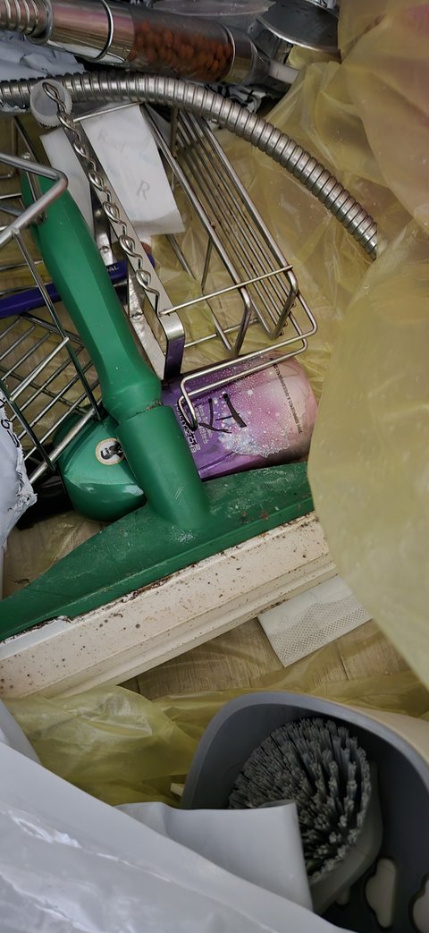 욕실용품 정리를 일부 하지 않고 봉지째 그대로 두고 가셨습니다.