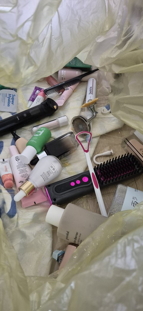 여러 위생용품과 소형 가전이 한 봉지에 섞여 있었고,
