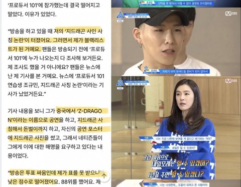 ▶빅뱅팬들 때문에 투표 못 받아서 프듀 탈락했다고 인터뷰