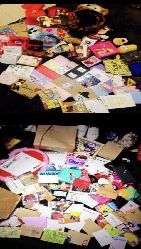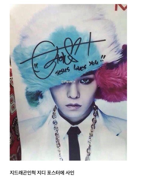 팬들에게 조공을 받으며 지디 포스터에 싸인을 하기도 함