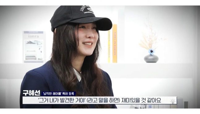한국발명진흥회 유튜브 캡처.한편 구혜선은 지난해 2월 성균관대학교 영상학과를 졸업 후 같은 해 6월 카이스트 과학저널리즘 대학원에 들어가 공학 석사 과정을 밟고 있다. 최근에는 자신이 직접 개발에 참여한 ‘펼치는 헤어롤’에 대한 특허증을 공개, 벤처 기업 대표가 되었다는 소식을 전해 많은 사람들을 놀라게 하기도 했다.