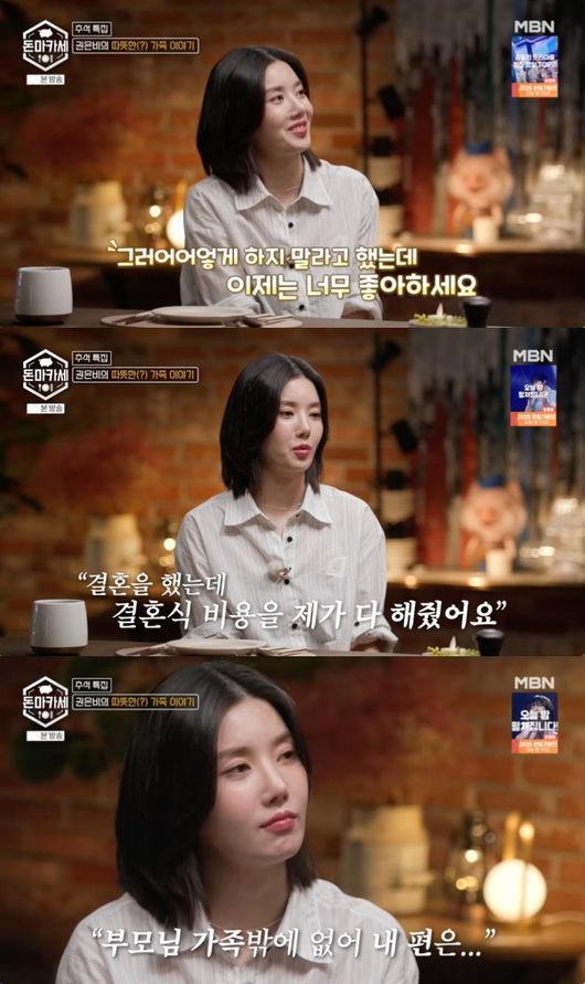 권은비는 결혼식 비용에 대한 오빠의 반응에 대해 “얘기는 저희가 안 나눴는데 부담을 느끼는 것 같아서 그 이후로는 도와주지 말아야겠다했다”라며, “도움을 주려고 할 때마다 ‘괜찮다’고 한다. 도움을 받으려고도 하지 않는다. 그 모습도 고맙고 미안한 거다. 도움을 받을 수 있는데”라고 아쉬움 마음을 드러내기도 했다. /seon@osen.co.kr