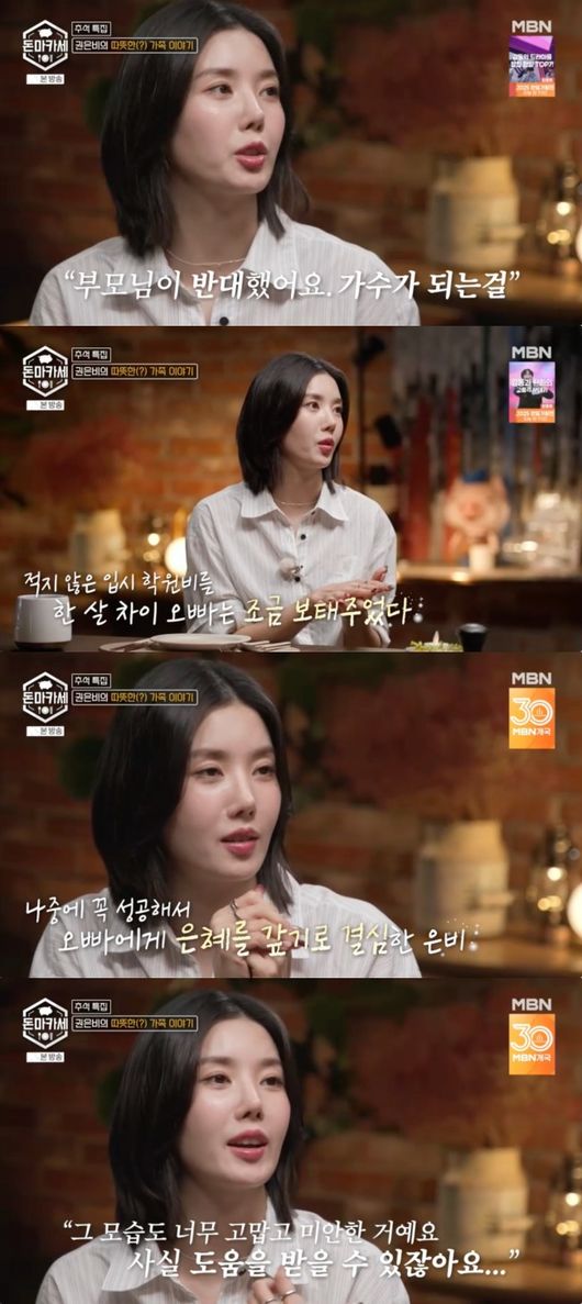 이어 권은비는 “내가 어렸을 때 예고에 가고 싶었다. 예고 갈 때는 고등학교 자체도 돈이 많이 드는데 입시에도 돈이 꽤 많이 든다. 어떻게든 가고 싶었는데, 부모님이 반대하셨었다. 그때 오빠가 고등학생이었는데 부모님 몰래 입시 학원비를 조금 보태줬다”라고 설명했다.