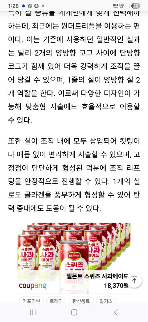또한 실이 조직 내에 모두 삽입되어 컷팅이나 매듭 없이 편리하게 시술할 수 있으며, 고정점이 단단하게 형성된 덕분에 조직 리프팅을 안정적으로 진행할 수 있다. 1개의 실로도 콜라겐을 풍부하게 형성할 수 있어 탄력 증대에도 도움이 될 수 있다.