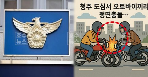 ❶ 청주 산남동 삼거리서 오토바이끼리 충돌…10대 운전자 숨진 이유는?❷ https://www.hosu-news.com/news/articleView.html?idxno=3668
