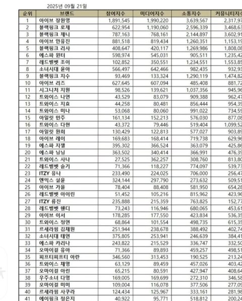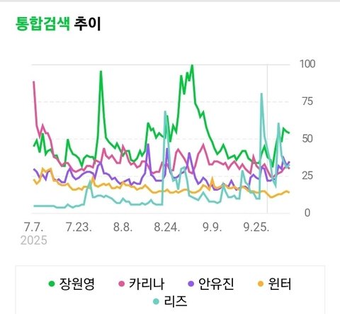 판에서는 엄청난 스타같던데 검색량 낮네 리즈보다 낮을줄은 아이브, 르세라핌, 에스파, 엔믹스, 뉴진스, 장원영, 안유진, 카리나, 설윤