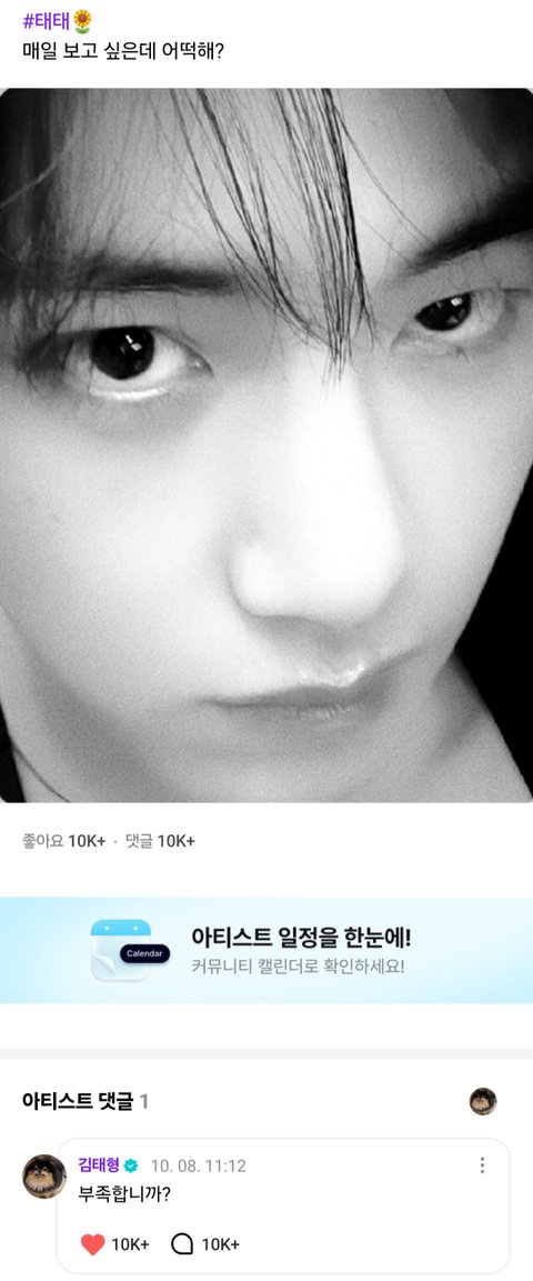 파리 패윜가서 위라 세 번 키고 포스트 쓰고 인스스 피드 다 올리고 한국 오자마자 위버스도 찾아왔는데도 계속 보고싶다니까 부족하냐고ㅋㅋㅋㅋ근데 계속 보고싶긔