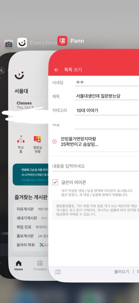 안믿을거면믿지마랑 25학번이고 슴살임 대학생활물어바도되고 고닥교 생활물어봐두되공 인증은 걍 머가 없어서 에타랑 과잠으로인증할게