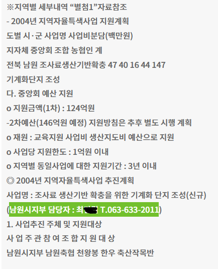 조사료 생산기반 확충을 위한 기계화 단지 조성 남원시지부 담당자 최00 063-633-2011