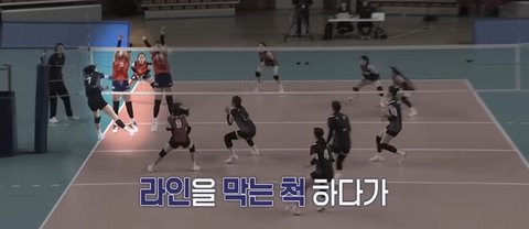 김연경 감독의 지시대로 정면을 막는 척 페이크 주고 대각선 쪽으로 몸을 틀어서 막으니