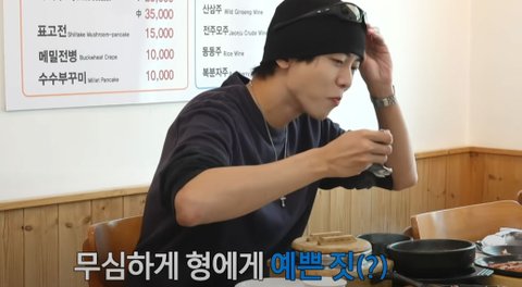 하하형 밥 위에 더덕 올려놓아주며 예쁜짓 하는 주우재 ㅎㅎㅎㅎㅎㅎ