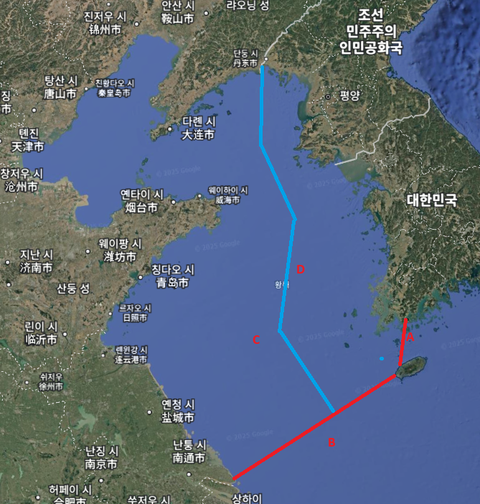그러면 국경 분계선이 되는 폭 3KM에 배가 대운하를 타고 바다로 진출해야 하는데,