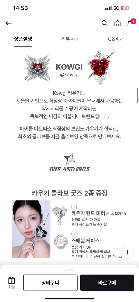 카우기 콜라보라는데 거울이랑 케이스가 개예쁨
