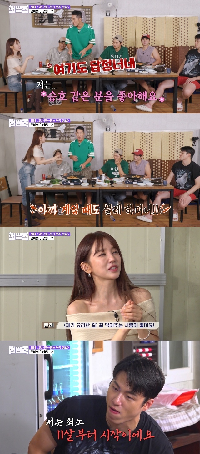 이어 "전 승호 같은 분 좋아한다. 전 이런 요리하는 걸 제가 좋아한다. 전 그래서 잘 먹어주는 사람이 좋다"고 털어놓아 눈길을 끌었다. 즉석에서 신승호도 윤은혜의 호감에 답했다. 신승호는 "11살 차이 나는 누나 나쁘지 않지 않냐"는 말에 "전 최소 11살부터 시작이다. 제 전 여친이 내년에 환갑이다"라고 너스레 떨어 웃음을 자아냈다. 윤은혜는 "다음에 불러주시면 요리도 해드릴 수 있다"고 재출연을 약속하며 핸썸즈 숙소를 떠났다.