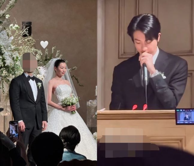특히 신부 대기실과 본식장에는 하얀 꽃들로 가득 장식돼 눈길을 끌었고, 신랑 신부가 입장하는 순간 하객들의 환호가 터져 나오며 뜨거운 축하 분위기를 자아냈다. 작곡가 김이나, 방송인 사오리, 미쓰에이 출신 민, 전 축구선수 김영광 등 연예계 스타들이 대거 참석해 자리를 빛냈다