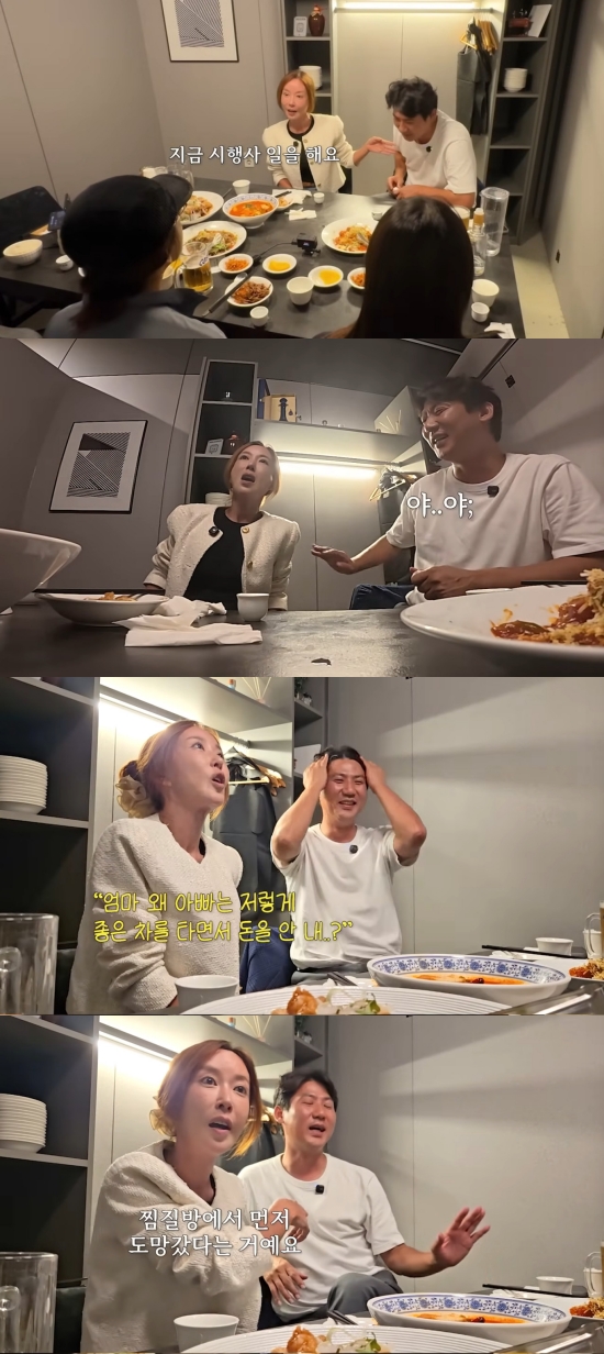 임효성은 "부부 유튜브를 하고 싶은 거냐"는 제작진의 물음에 크게 손사래를 쳤다. 이에 슈는 "(임효성이) 지금 시행사 일을 한다. 사실 대박이 났다"며 임효성이 사업으로 성공했다고 자랑했다. 그러나 이내 "우리 (아들) 유가 '아빠는 저렇게 좋은 차를 타면서 왜 돈을 안 내?'라고 했다더라. 찜질방에서 아빠가 자기 것만 계산하고 도망갔다"고 폭로해 웃음을 안겼다.