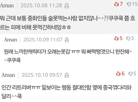 Aman은 다음과 같은 특징을 가진 악플러일 가능성이 높습니다: