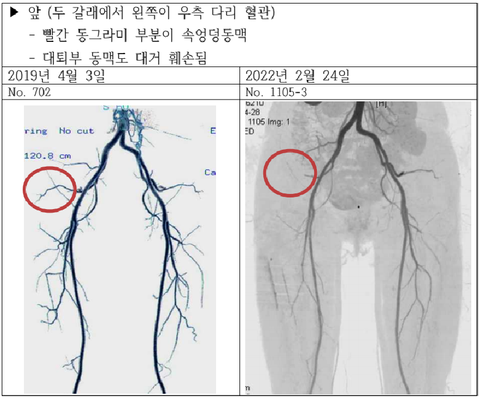 2. 고의적인 신체훼손(대퇴부와 거리가 먼 엉덩이 동맥, 엉덩이뼈와 대퇴부뼈를 잇는 인간의 가장 강력하고 몸을 지탱하는 둥근인대 완전 절단, 엉덩이와 대퇴부 근육 훼손, 좌골신경손상 등. 이를 위해 정상 골종양 제거수술이람녀 대퇴부를 20cm만 절개하면 되는 것을 속엉덩동맥 등을 절단하기 위해 엉덩이까지 40cm를 절개) )과