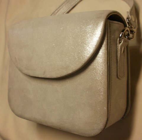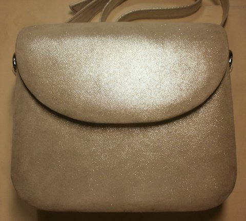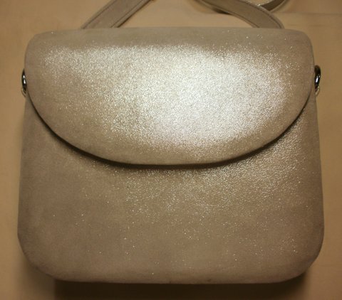 실버 컬러 천연 양가죽으로 심플하고 럭셔리하게 제작한 미니 숄더 백입니다.(마디샤)