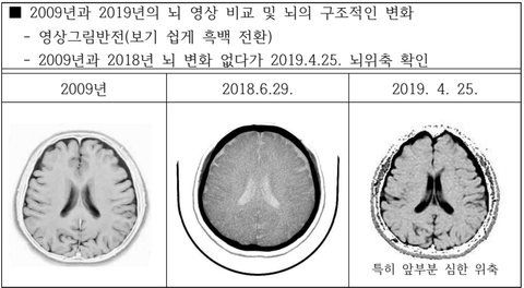 1. 뇌염 : 뇌막 및 뇌실질에 광범위한 심각한 염증(2019.4.25. 뇌 MRI에 대하여 타 병원에서 뇌염 소견 받음)