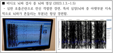 - 뇌파 검사 : 뇌기능 이상(2023.11.1.), 저전압 뇌파(2024.3.18.) 소견