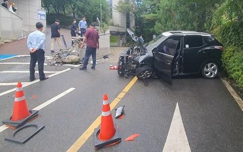 A씨는 이날 오후 1시께 부천시 소사구에 있는 한 대학교 캠퍼스에서 소형 스포츠유틸리티차량(SUV)을 운전하다가 캠퍼스 내 건물 진입로 구조물을 들이받은 혐의를 받고 있다.