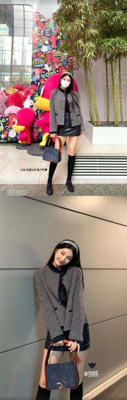 레드벨벳 조이는 29일 오후 자신의 인스타그램에 "오늘 동물농장 출근룩"이라는 글과 함께 사진을 게재했다.