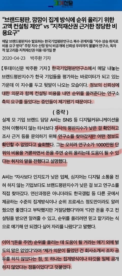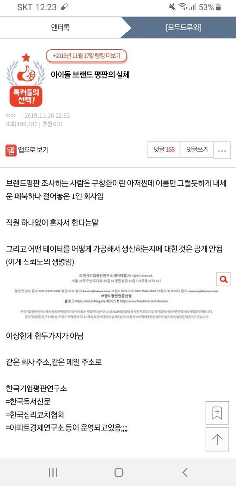 브랜드 평판 순위가 뭐라고 도배까지 해데네