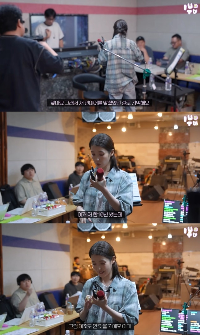 스태프가 "그럼 아예 지금 바꿔 보자"고 제안했고 아이유는 "이 인이어가 너무 오래되긴 했다"고 덧붙였다.