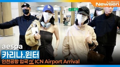 [인천국제공항=뉴스엔 김기태 기자] 가수 에스파 멤버 카리나, 윈터가 10월 14일 일본 2025-26 aespa LIVE TOUR - SYNK : aeXIS LINE - 투어 일정을 마치고 인천시 중구 인천국제공항을 통해 입국했다.