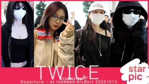 그룹 트와이스(TWICE) 나연, 쯔위, 모모, 지효가 미국 뉴욕에서 열리는 '빅토리아 시크릿 패션쇼 2025' 무대를 위해 14일 오전 인천국제공항을 통해 출국하고 있다. 2025.10.14