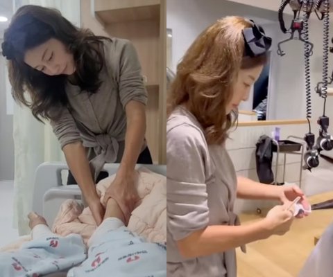 이와 함께 공개한 동영상에서 이지현은 병원에 있는 아빠의 발을 정성껏 마사지 하고 있는 모습이다. 또한 미용실에서는 바쁘게 머리를 하고 있는 등 바쁜 일상을 보여주고 있다.
