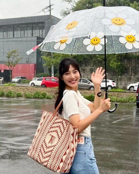 사진 속 조이는 흰티와 청바지 차림으로 플라워 패턴이 그려진 우산을 들고 있다. 뒤를 돌아보며 환하게 웃는 조이는 손을 흔들며 러블리한 매력을 뽐냈다.