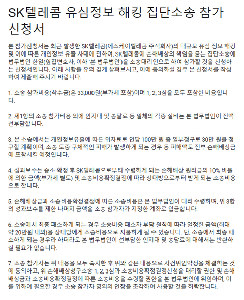 [SKT 집단소송] SKT 유심해킹사태 손해배상청구 집단소송 원고 모집