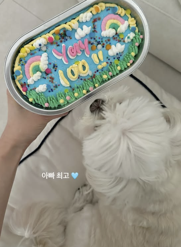 공개된 사진에는 전진의 금연 100일을 기념해 직접 주문 제작한 레터링 케이크가 담겨 있었다. 반려견들도 함께 등장해 눈길을 끌었으며, 류이서는 “아빠 최고”라는 글을 덧붙였다.