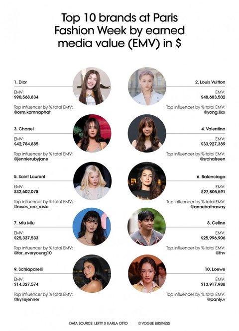 탑 10에 한국 연예인은 펠릭스, 제니, 로제, 장원영, 뷔 5명이 랭크